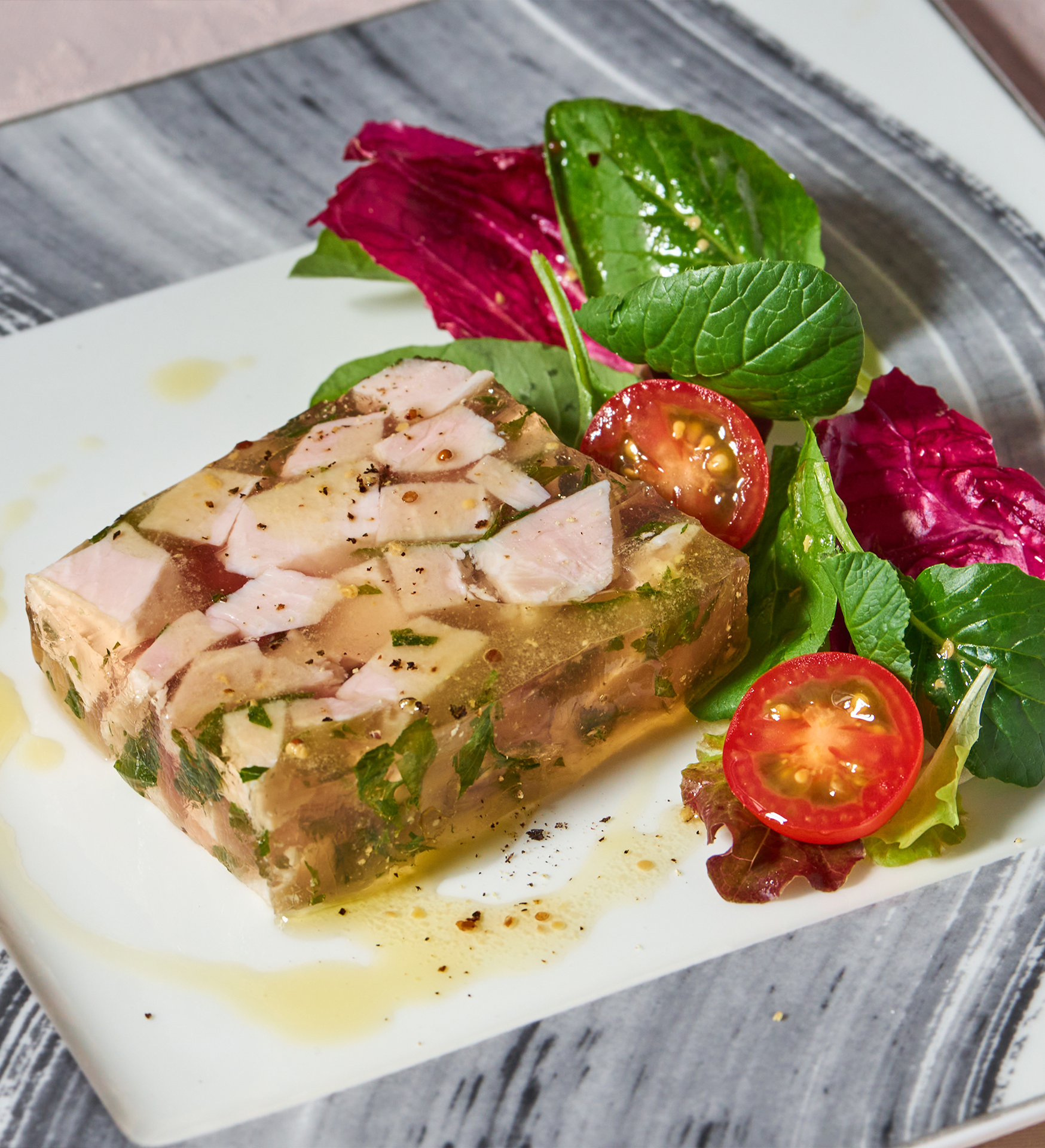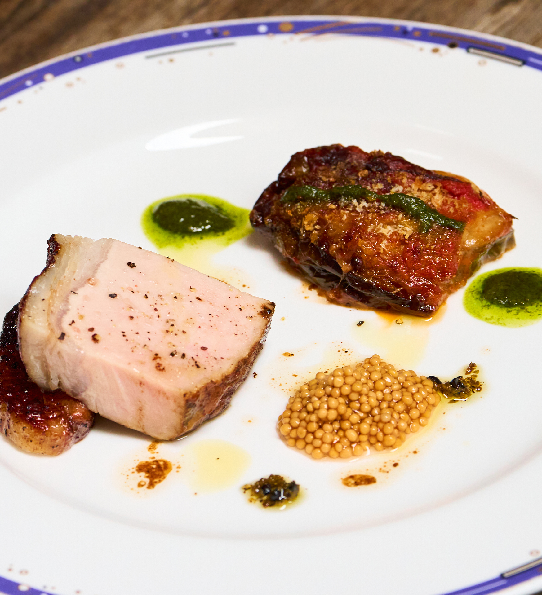 オリーブ夢豚の炭火焼き/スモークの香り/シェリービネガーソース