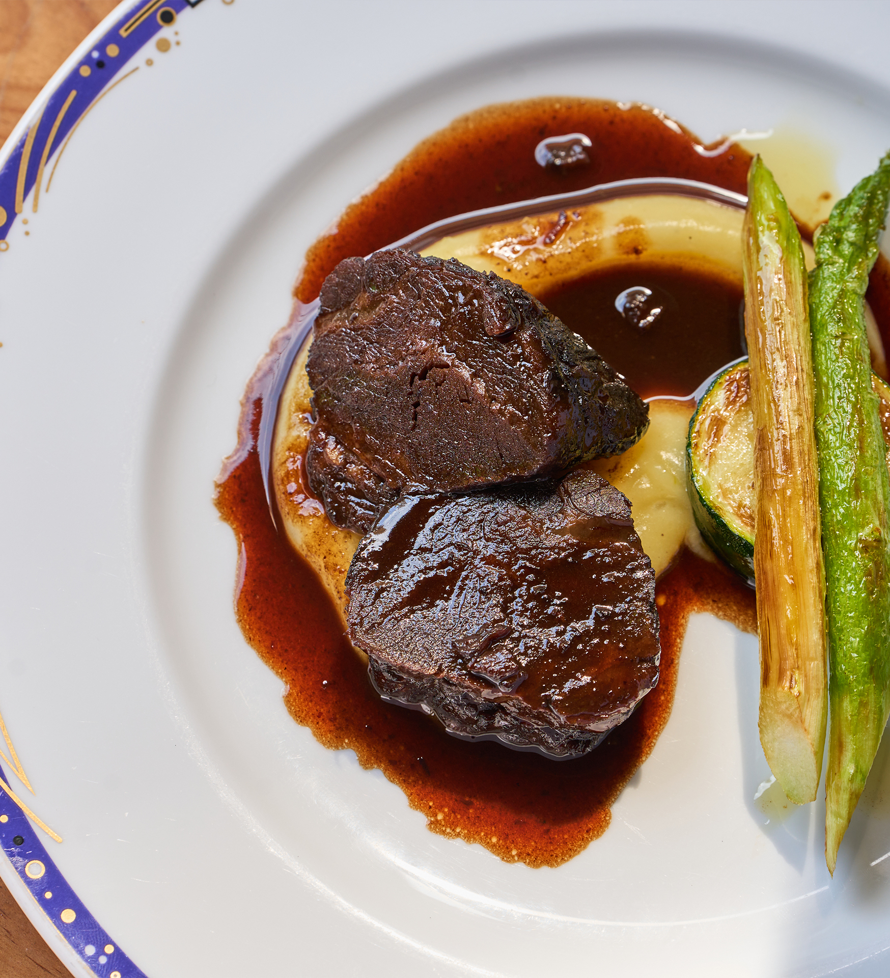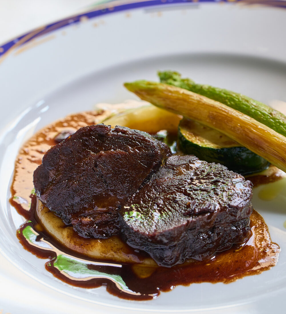 レストラン旭屋のコースでもご好評いただいている、「牛ほほ肉の赤ワイン煮込み」を、ご家庭でもお楽しみいただける形に仕立てました。厳選した国産牛のほほ肉を、香味野菜とともに赤ワインでじっくり煮込み、やわらかく、フォークでほぐれるほどにとろける食感に。ソースには、複数のワインとフォン・ド・ヴォーを贅沢に使い、奥行きのある香りとコク、深い余韻を引き出しています。普段の食卓に、少しだけ贅沢な一皿を。大切な方とのディナーや、お酒とともに過ごす週末のひとときにおすすめです。